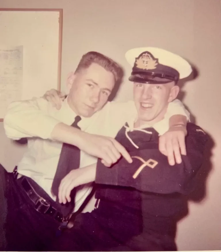 Upon my return home for Christmas, I discovered that my relationship with my family had changed dramatically. I think my parents’ experiences during the war, especially my mother’s loss of her only brother, had placed the value of military service well above age as a measure of adulthood. Wearing my navy blue uniform, I was therefore now accepted as an adult, and welcomed into their adult circle where I was expected to smoke and drink the way they did. My mother insisted that I wear my uniform to Christmas Eve church service, and as I came back to my seat after communion I was a little taken aback by the tears in her eyes as she saw the respectful glances that were directed at me as I moved through the crowded pews.